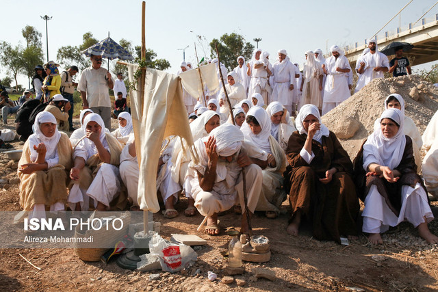 هنوز هم افرادی هستند که با لباس سفید در رود کارون آبتنی میکنند. این افراد پیروان حضرت یحیی(ع) هستند که همچنان طبق مراسم خاصی فریضه دینیشان را به جا میآورند.